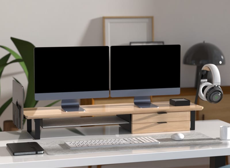 Upgrade your home office setup with premium workspace accessories that promote healthy posture and boost efficiency. Our wooden monitor stands, adjustable laptop stands, and wrist rests provide the perfect blend of style, durability, and functionality for a professional workspace.